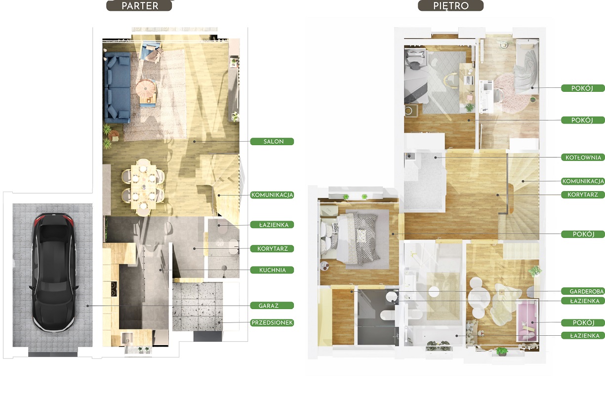 - Rodzaj nieruchomości: dom dwupoziomowy + poddasze użytkowe