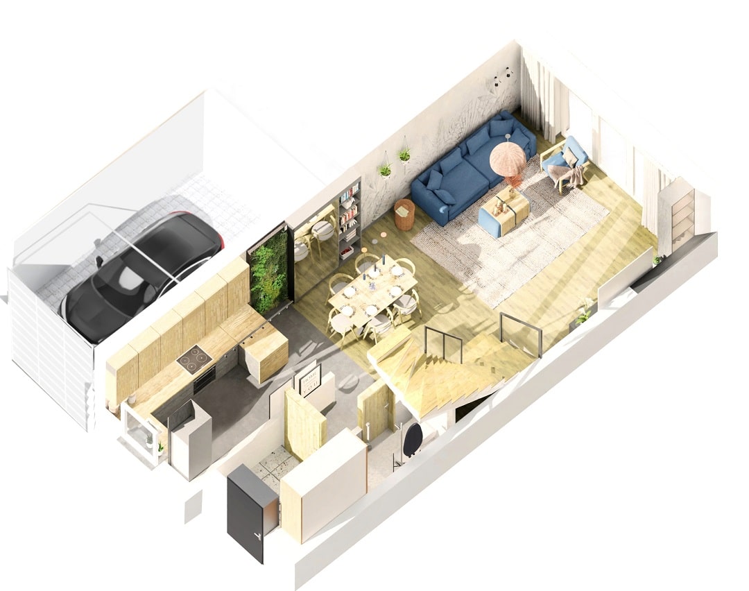Do każdego lokalu przynależy ogródek o powierzchni od 65 do ponad 170 metrów kwadratowych. Każde mieszkanie posiada dwie kondygnacje mieszkalne oraz poddasze, zapewniając przestronność oraz pełen komfort użytkowania.