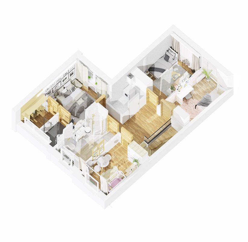 - M. Garderoba 2,80 m2N. Sypialnia 9,74 m2O. Pokój 10,76 m2