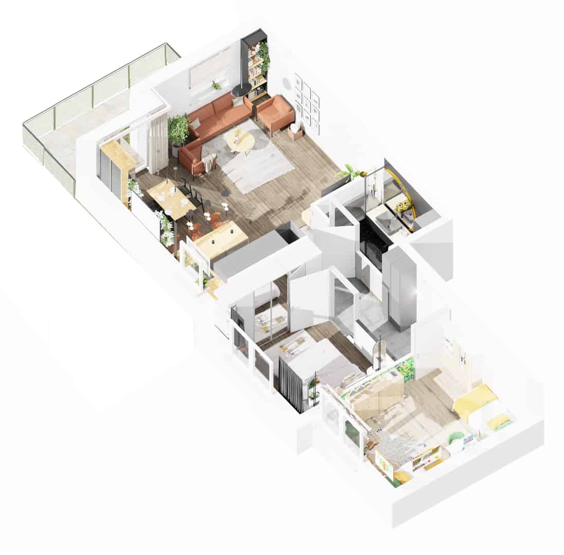 Mieszkania w kameralnym budynku wielorodzinnym, tzw. willi miejskiej mają ok. 65 metrów kwadratowych. Na każdej z trzech kondygnacji znajdują się 2 mieszkania, co zapewnia spokój i wygodę zamieszkania.