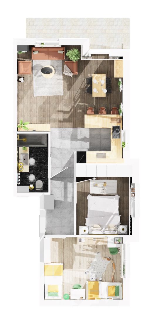 Mieszkania w kameralnym budynku wielorodzinnym, tzw. willi miejskiej mają ok. 65 metrów kwadratowych. Na każdej z trzech kondygnacjach znajdują się 2 mieszkania, co zapewnia spokój i wygodę zamieszkania.